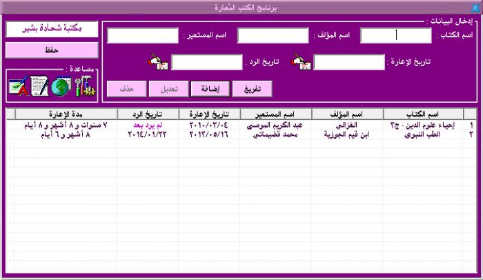 البرنامج يضمن لك تنظيم عملية إعارة الكتب ومتابعتها بسهولة وكفاءة.
